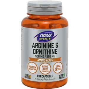 Now Foods Arginina e Ornitina 500/250mg - 100 Capsule Vegetali per Supporto Metabolico e Circolazione Sanguigna
