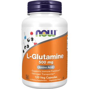 Now Foods L-Glutammina 500 mg - 120 Capsule Vegetali, Senza Glutine, Vegetariano, Kosher, Non OGM, Supporta la Funzione Immunitaria