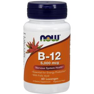 Now Foods Vitamina B-12 5000 mcg con Acido Folico - 60 Pastiglie Vegetariano e Kosher