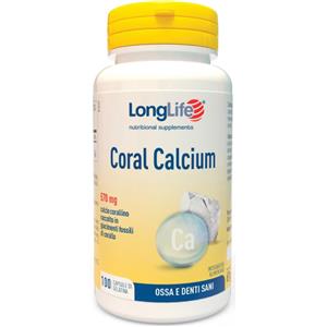 LongLife Coral Calcium 500 mg - Integratore alimentare per ossa e denti normali, 100 capsule con oltre 70 elementi in traccia