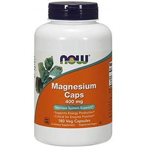 NOW Foods Magnesio 400 mg - 180 Capsule Vegetariano e Kosher, Supporto Energetico e per il Sistema Nervoso