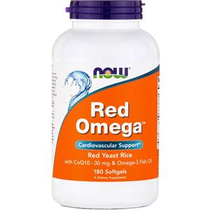 NOW FOODS Red Omega 180 perle - Supporto colesterolo e cardiovascolare con Riso Rosso, CoQ10 e Omega-3