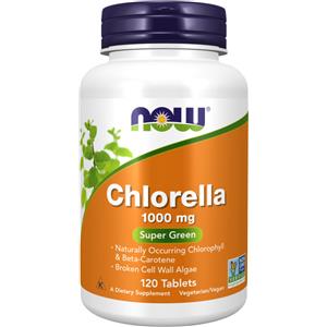 NOW FOODS Chlorella 1000mg - 120 Compresse, Super-alimento Ricco di Vitamine e Minerali