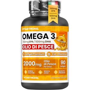 Vitastrong Omega 3 - Integratore di Olio di Pesce 2000mg con 700mg EPA e 500mg DHA, Capsule Molli con Vitamina E