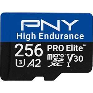 PNY Scheda microSDXC PRO Elite™ 256GB High Endurance C10 U3 V30 A2 - Velocità fino a 100/90MB/s per 4K UHD e sorveglianza