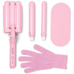 Mermade The Style Wand - Arricciacapelli con 3 teste intercambiabili, ceramica ionica, colore Pink