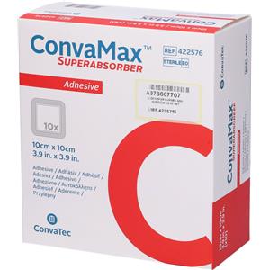 Convatec ConvaMax Superabsorber Adhesive 10x10 cm - Medicazione Sterile in Silicone per Lesioni Molto Essudanti (10 Pezzi)