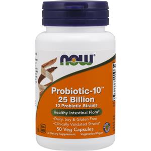 NOW FOODS Probiotic-10 - 25 miliardi di probiotici in 50 capsule vegetali, 10 ceppi per una flora intestinale sana