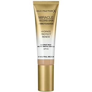 Max Factor Miracle Second Skin Fondotinta Liquido 30ml 07 Neutral Medium - Finish Naturale, Idratante con Latte di Cocco e SPF 20