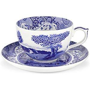 Portmeirion Spode Blue Italian Jumbo Cup e Piattino - Ceramica Vetrificata, Capacità 0,56L, Design Blu e Bianco