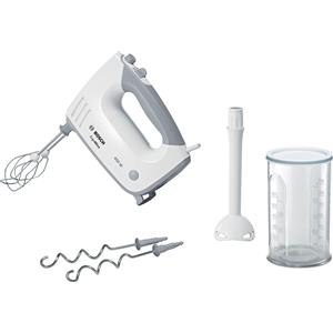 Bosch Sbattitore Elettrico MFQ36440, 400 W, 5 Velocità e Turbo, Leggero, Impugnatura Comoda, Fruste Incluse, Ganci per Impastare in Acciaio Inox Inclusi, Piede Frullatore e Bichhiere Inclusi, Bianco in Cottura elettrica e impastatrici
