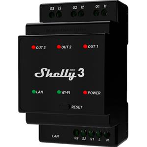 Shelly Pro 3 - Relè Smart WiFi LAN Bluetooth 3 Canali, Barra DIN, Fino a 48A, Automatizzazione per Uso Residenziale e Commerciale, Compatibile con Google Assistant e Alexa