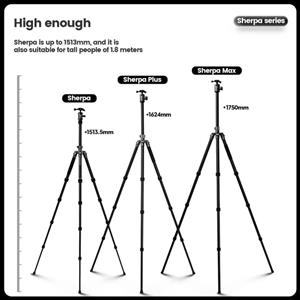 Fotopro Sherpa Carbon Treppiede in Fibra di Carbonio - Leggero 1,07 kg, Altezza Massima 151,4 cm, Piastra a Sgancio Rapido e Doppia Testa a Sfera