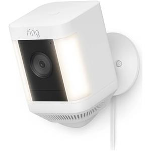 Ring Spotlight Cam Plus Plug-In - Telecamera di sorveglianza Wi-Fi per esterno, 1080p, audio, resistente agli agenti atmosferici, colore giorno e notte
