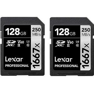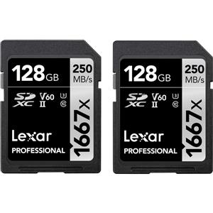 Lexar Professional 1667x Scheda SD 128 GB Set da 2, Scheda di memoria SDXC UHS-II, Fino a 250 MB/s di lettura, Class 10, U3, V60, SD per Fotografi Professionisti, Videografi (LSD1667128G-B2NAA)