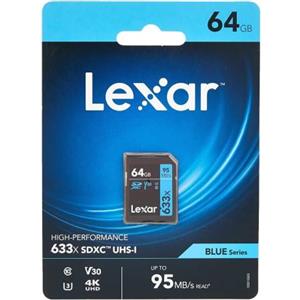 Lexar Professional 633x Scheda SD 64 GB, Scheda di Memoria SDXC UHS-I, U3, V30, Class 10, Fino a 95 MB/s di Lettura, per DSLR di Fascia Media, Videocamera HD, Fotocamere 3D (LSD64GCB1EU633)