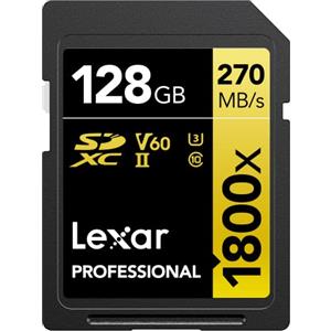 Lexar SDXC Professional 128GB 1800x UHS-II serie GOLD, Classe 10, U3, V60, per Registrazione video in 4K, nero
