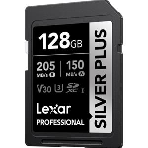 Lexar Professional Silver Plus 128 GB SDXC UHS-I V30 U3 - Velocità di lettura fino a 205 MB/s, scrittura fino a 150 MB/s, supporta video 4K