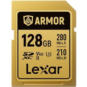 Lexar ARMOR GOLD SDXC UHS-II 128GB - Velocità fino a 280 MB/s, V60, Resistente all'acqua e alla polvere