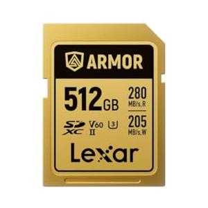 Lexar 512GB ARMOR GOLD UHS-II SDXC - Scheda di Memoria Resistente IP68 con Velocità R280/W210 (V60)