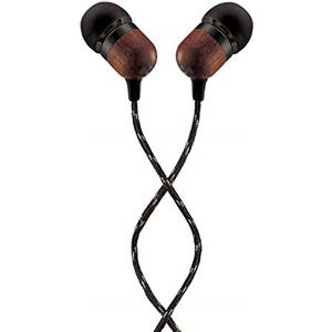 Marley House of Smile Jamaica Cuffie In Ear, Auricolari con Filo, Microfono Incorporato, Isolamento Acustico, Cuscinetto da 9.2 mm, 2 Misure, Cavi Antigroviglio, Materiale Riciclato, Nero/Legno