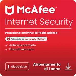 McAfee Internet Security - Protezione Antivirus per 1 Dispositivo, 1 Anno, Windows, Mac, Android e iOS