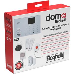Beghelli Dom-e Kit Antitrusione - Sistema di Allarme Wireless Wi-Fi/GSM con Batteria Anti Black-Out, Pulsante SOS, Compatibile Alexa e Google Home, Controllo via App, Bianco