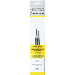 Winsor & Newton Set di 3 Pennelli Foundation - Tondo n°2, Piatto n°2, Filbert n°4 - Manico Corto - Sintetici Bianchi