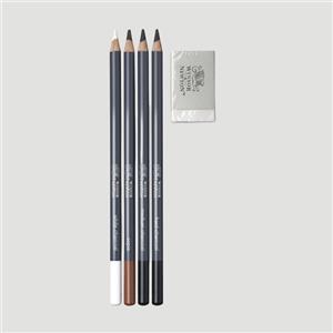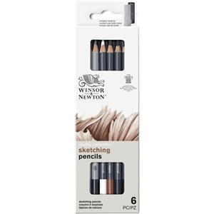 Winsor&Newton Scatola in Metallo con 6 Matite da Schizzo: Grafite 4B e 8B, Bianco, Seppia, Carboncino