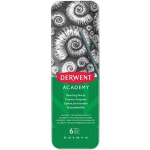 Derwent Academy Matite Grafite 6 pz - 3B, 2B, B, HB, H, 2H - Alta Qualità per Artisti Principianti