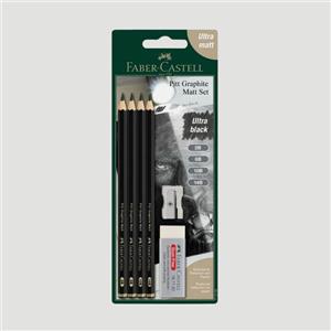 Faber-Castell 115298 Set di Matite Pitt Graphite Matt - 4 Matite (2B, 6B, 10B, 14B) con Temperamatite e Gomma
