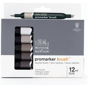 Winsor&Newton Promarker Brush - Set di 12 Pennarelli Grigi con Blender e Punte Doppie