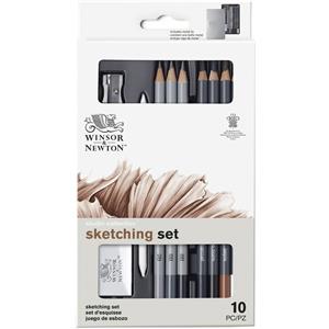 Winsor&Newton Scatola in Metallo con 10 Matite da Schizzo Assortite e Accessori