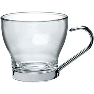 BORMIOLI ROCCO Oslo Tazzina da Caffè con Manico in Acciaio Inox - Capacità 100ml, Vetro Temperato, Set da 6 Pezzi