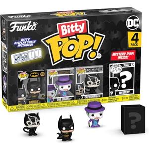 Funko Bitty Pop! DC Comics 4-Pack - Batman, Batgirl, The Joker con Mini Figura Misteriosa - 0.9 Inch (2.2 Cm) - Ripiano Espositivo Incluso