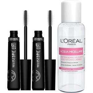 L'Oreal Paris L'Oréal Paris Telescopic Lift Mascara Formula Extra Black Volumizzante Allungante Lunga Tenuta 36h per uno Sguardo Intenso 2 Mascara + Acqua Micellare Detergente Delicato Formato da Viaggio 30ml