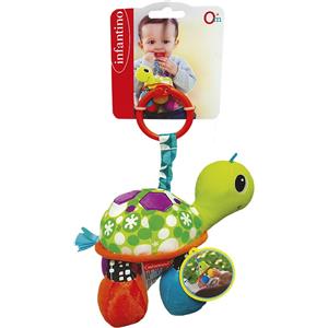 Infantino Sonaglino Tartaruga Verde - Morbido Tessuto, Anello per Dentizione e Specchio Giocattolo