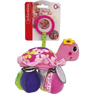 Infantino Sonaglino Tartaruga Rosa - Sonaglio in Morbido Tessuto con Anello per Dentizione e Specchio