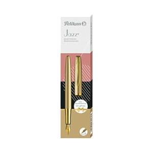Pelikan Jazz Noble Elegance Penna Stilografica Gold - Inchiostro Blu, Clip Elastica, Design Slanciato, Pennino in Acciaio, Astuccio Regalo