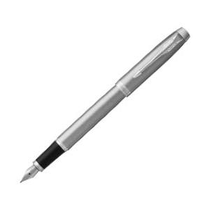 Parker IM SS CT Penna Stilografica in Acciaio Inossidabile con Finiture Smerigliate e Cromate - Punta M - Con Astuccio Regalo e Cartuccia Blu