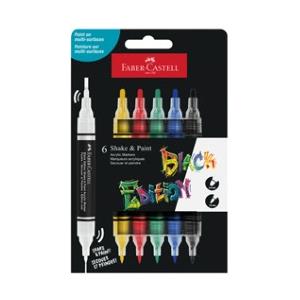 Faber-Castell Black Edition Shake & Paint - Set di 6 Marcatori Acrilici Doppia Punta 3Mm e 1Mm, Colori Assortiti, Impermeabili e Facili da Usare