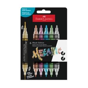 Faber-Castell Black Edition Shake & Paint - Set di 6 Marcatori Acrilici Metallici con Punta Doppia e Inchiostro a Base d'Acqua