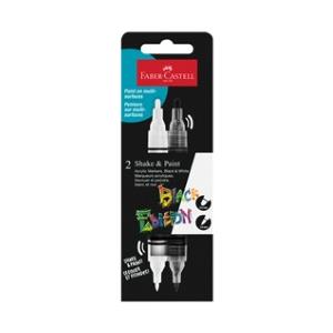 FABER-CASTELL Pennarello acrilico Shake&Paint Black Edition - 2 penne con punte rotonde da 3 mm e 1 mm, inchiostro a base d'acqua altamente pigmentato