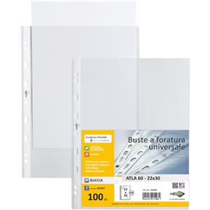 Sei Rota Buste in Polipropilene (PP) Atla 60 - Formato 22 x 30 cm, Basso Spessore, Foratura Universale Rinforzata, Confezione da 100 pezzi