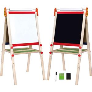 VIGA TOYS Lavagna Bifacciale Regolabile in Legno 3 in 1 con Rotolo per Bambini