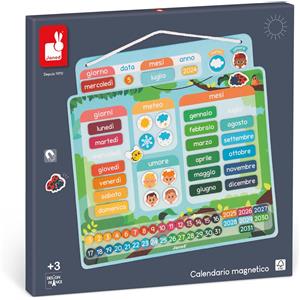 Janod Calendario Magnetico Italiano - 71 Calamite, Gioco Educativo per Comprendere il Tempo e Acquisire Autonomia, Giocattolo in Cartone FSC, dai 3 anni