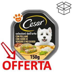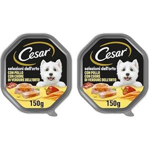 Cesar Selezioni dell'orto Cibo per Cane con Pollo con cuore di verdure dell'orto 150 g - 14 Vaschette (Confezione da 2)