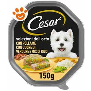 Cesar Dog Selezioni dell'Orto Vaschetta Multipack 14x150G POLLAME CON CUORE DI VERDURE E MIX RISO