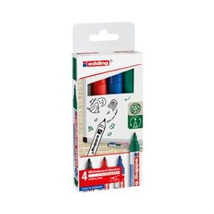 EDDING Marcatore per Lavagne Bianche 660 - Punta Conica 1,5-3 mm - Inchiostro Pigmentato Inodore - Confezione da 4 Colori Assortiti