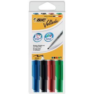 BIC Velleda 1741 - Pennarelli per Lavagne Bianche, Punta Tonda 1,4 mm, Colori Assortiti, Astuccio da 4 Pezzi